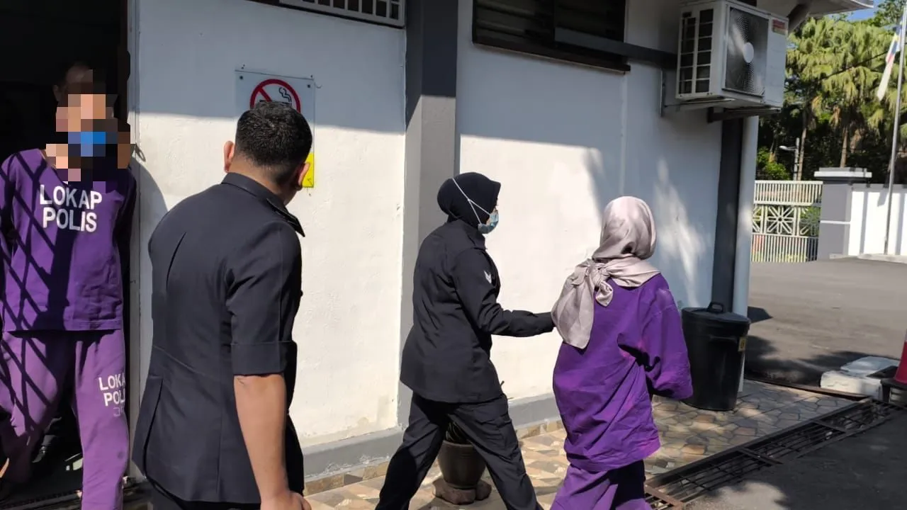 Sebelum itu, kedua-dua suspek yang memakai pakaian lokap berwarna ungu tiba di mahkamah kira-kira jam 9 pagi menaiki trak Polis Diraja Malaysia (PDRM).