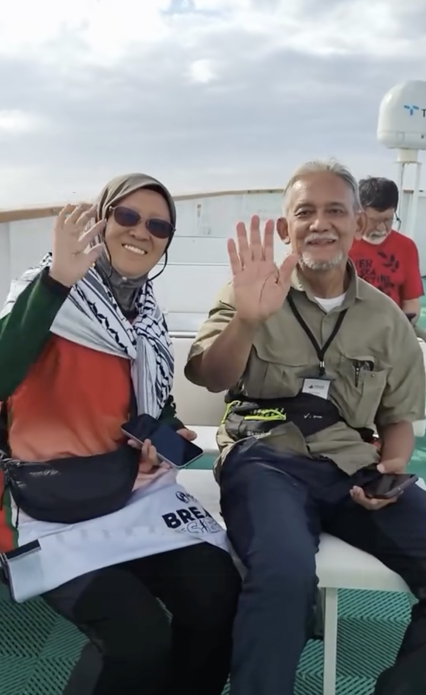 Seramai lapan delegasi Malaysia menaiki kapal Conscience, termasuk Prof Emeritus Dr Mohd Alauddin dan Dr Fauziah, manakala seorang lagi wakil Malaysia berada di atas kapal layar Umm Saad.