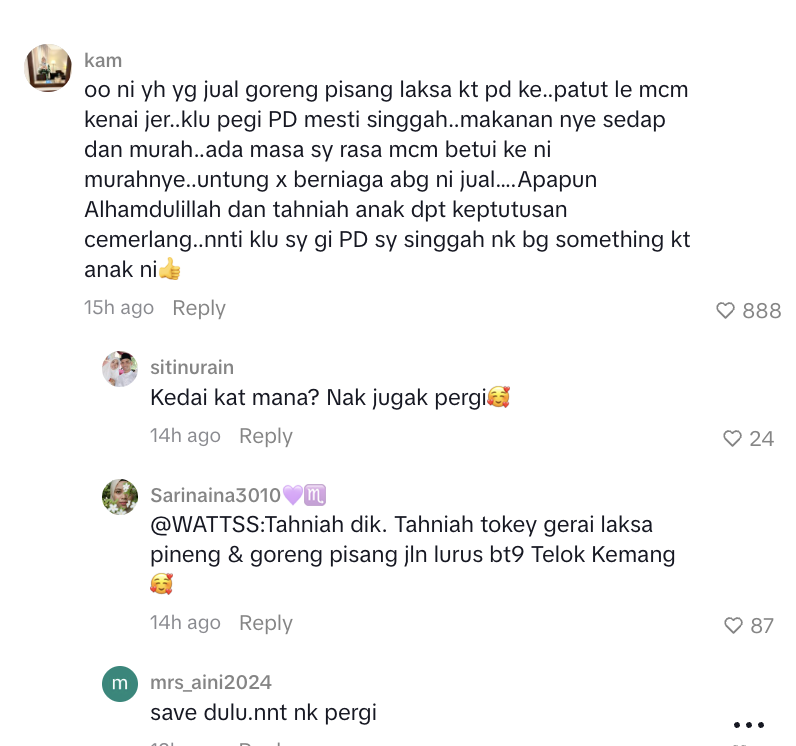 Menjengah ke ruangan komen, ada pengguna media sosial memaklumkan bapa kepada pelajar cemerlang berkenaaan adalah peniaga pisang goreng dan laksa di Teluk Kemang.
