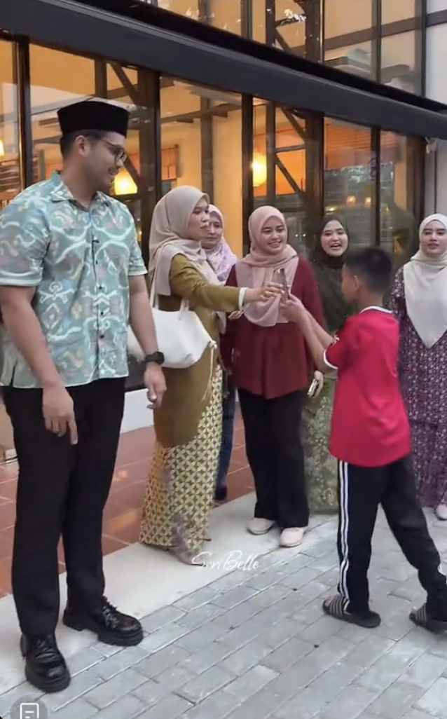 Sekumpulan kanak-kanak teruja apabila mendapat peluang berjumpa dengan usahawan terkenal, Khairul Aming di hadapan restoran Rembayung milik pempengaruh media sosial tersebut.
