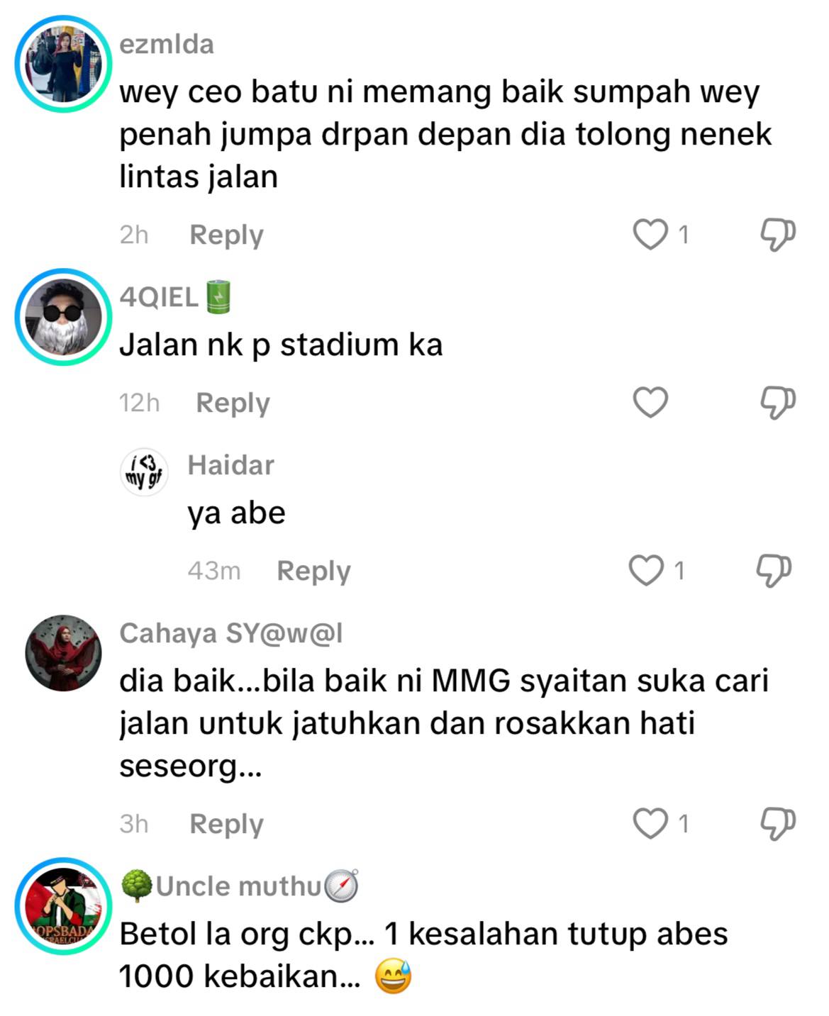 “Siapa kata CEO Batu jahat, dengan tak pakai kasut dia boleh tolong orang ‘accident’,” kata wanita itu.