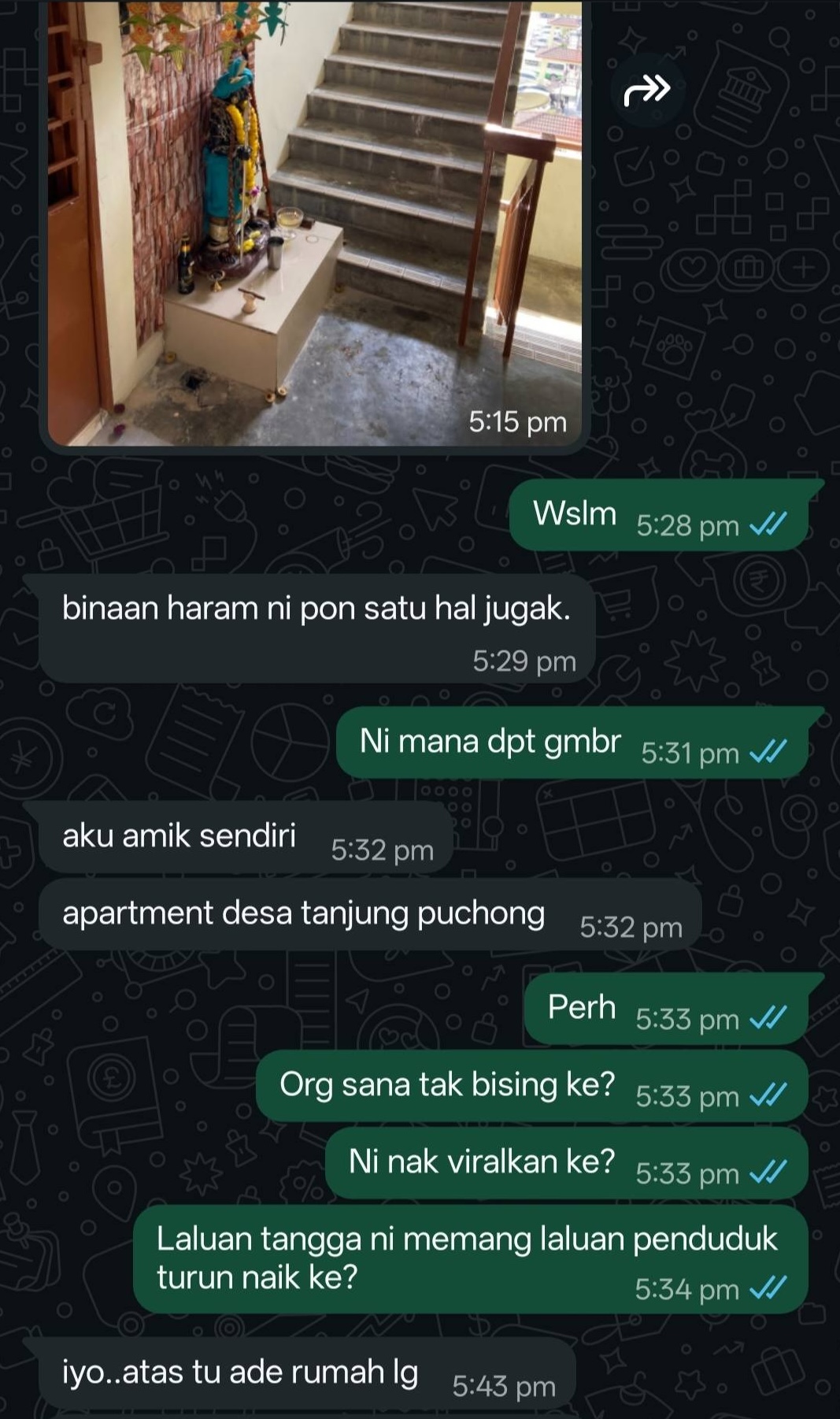 Menurut pengadu, tangga itu merupakan laluan penting bagi penduduk naik dan turun, manakala di tingkat atas masih terdapat beberapa unit kediaman yang dihuni.