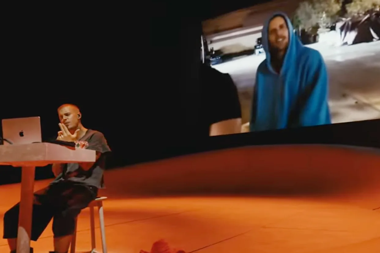 Memetik laporan daripada The Guardian, Bieber memilih pendekatan minimalis dengan menyanyikan semula lagu-lagu nostalgianya dalam persembahan tersebut sambil duduk di hadapan komputer riba, diiringi paparan video muzik lama seperti Baby dan Never Say Never.