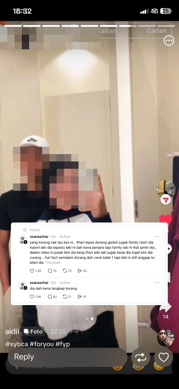Seorang individu di platform Threads tampil mendedahkan rakaman kamera litar tertutup (CCTV) memaparkan tindakan seorang lelaki mengasari isterinya di sebuah kawasan premis perniagaan.