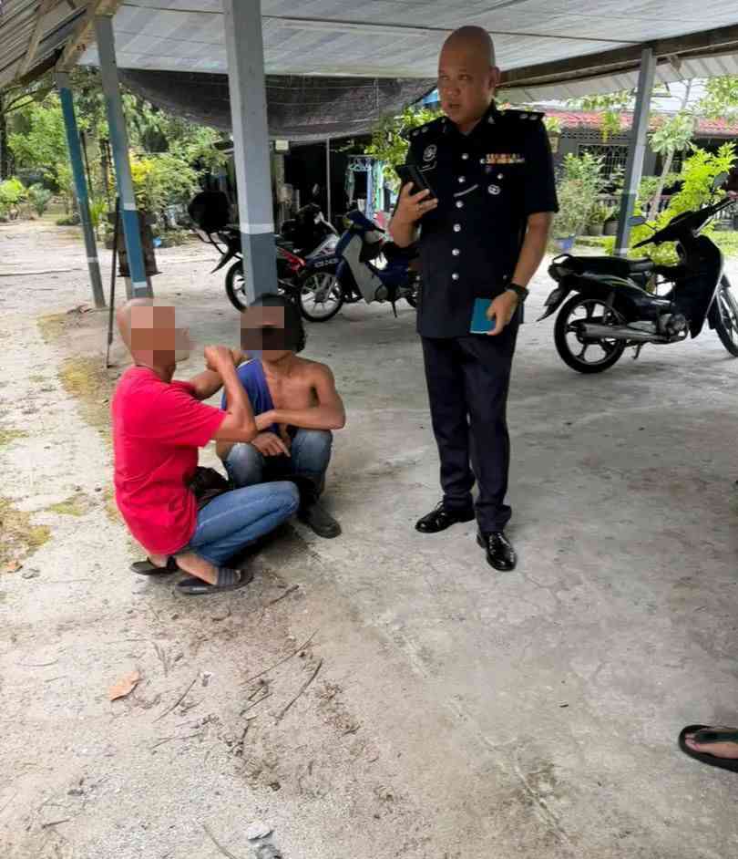 Bakri berkata, suspek masing-masing berusia 39 dan 52 tahun ditahan bagi membantu siasatan selain polis merampas beberapa barangan berkaitan kejadian termasuk sabit berhulu panjang dan motosikal.