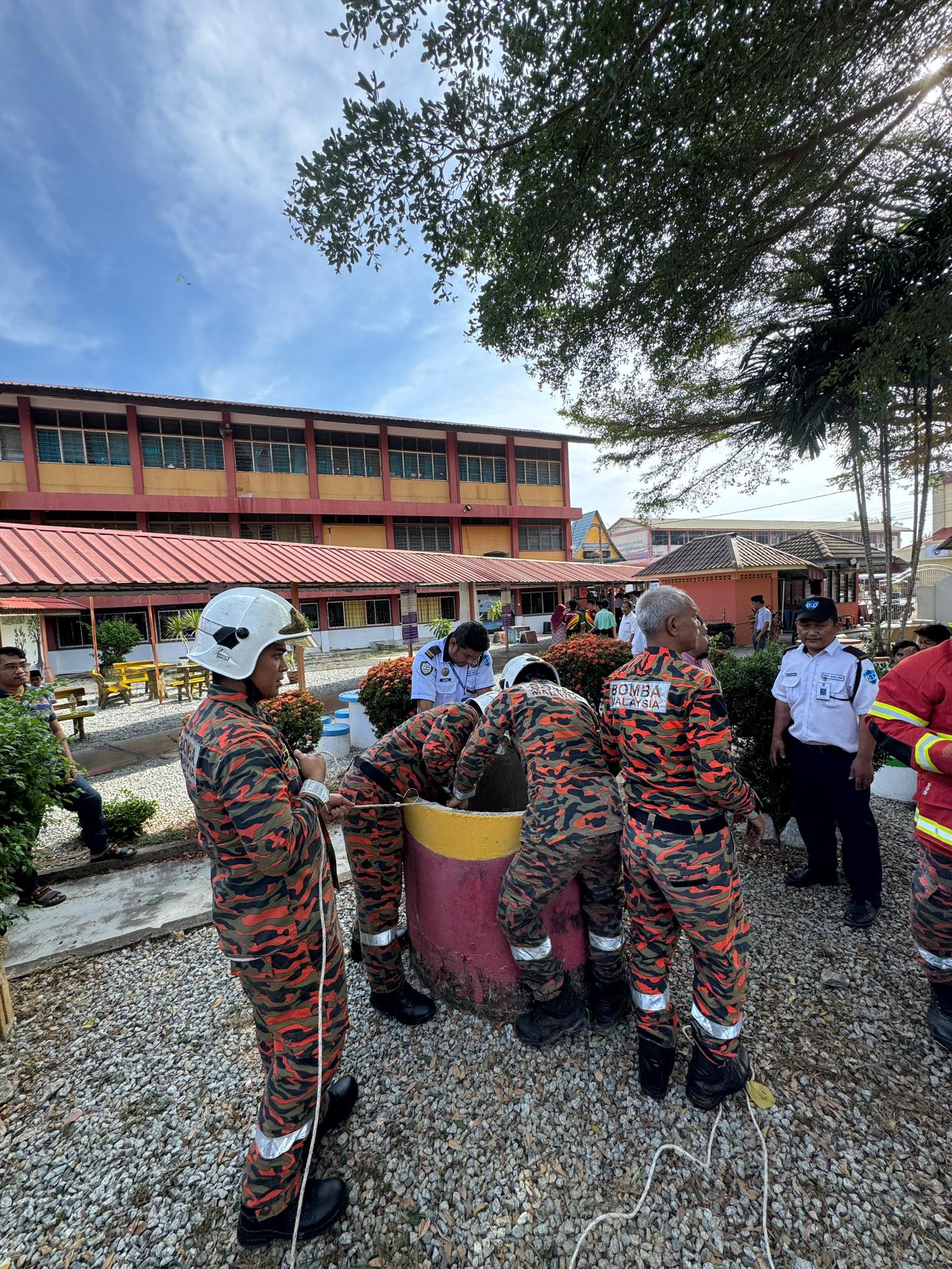 Menurut Azmi lagi, usaha awal menyelamat turut dilakukan oleh tukang kebun sekolah namun tidak berjaya.