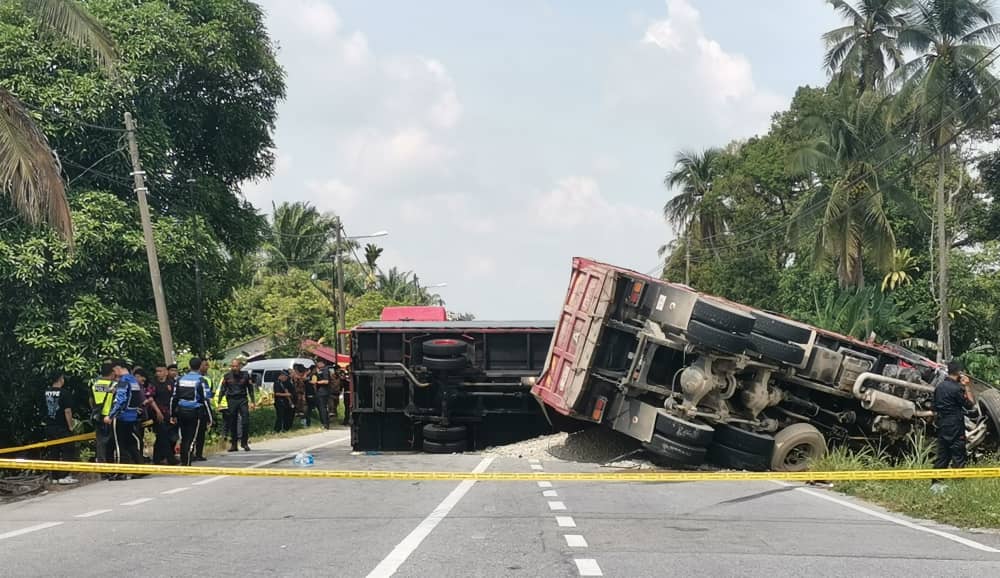 Trak itu dalam perjalanan pulang ke Ipoh selepas selesai bertugas sempena sambutan perayaan Chitrapournami sebelum dilanggar lori membawa batu.