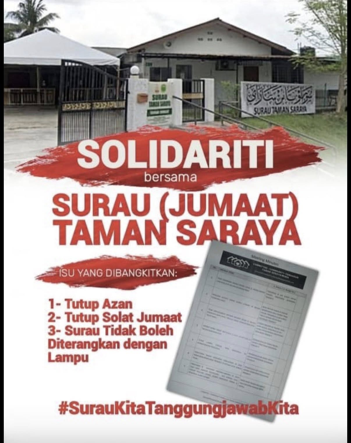 Terdahulu, tular di media sosial sejak semalam dakwaan kononnya surau di Taman Seraya dihalang daripada melaungkan azan, tidak dibenarkan solat Jumaat, dihadkan waktu operasi serta tidak dibenarkan menyalakan lampu, yang kemudiannya mencetuskan pelbagai reaksi netizen.