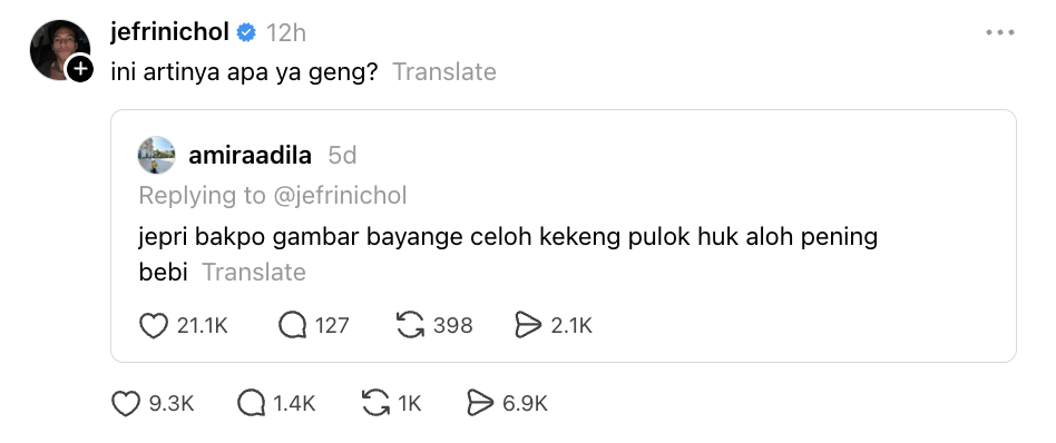 “Itulah Jepri, mu wak hal lagi ngan sek Kelate, abis belaka sek Kelate mari,” usik netizen.