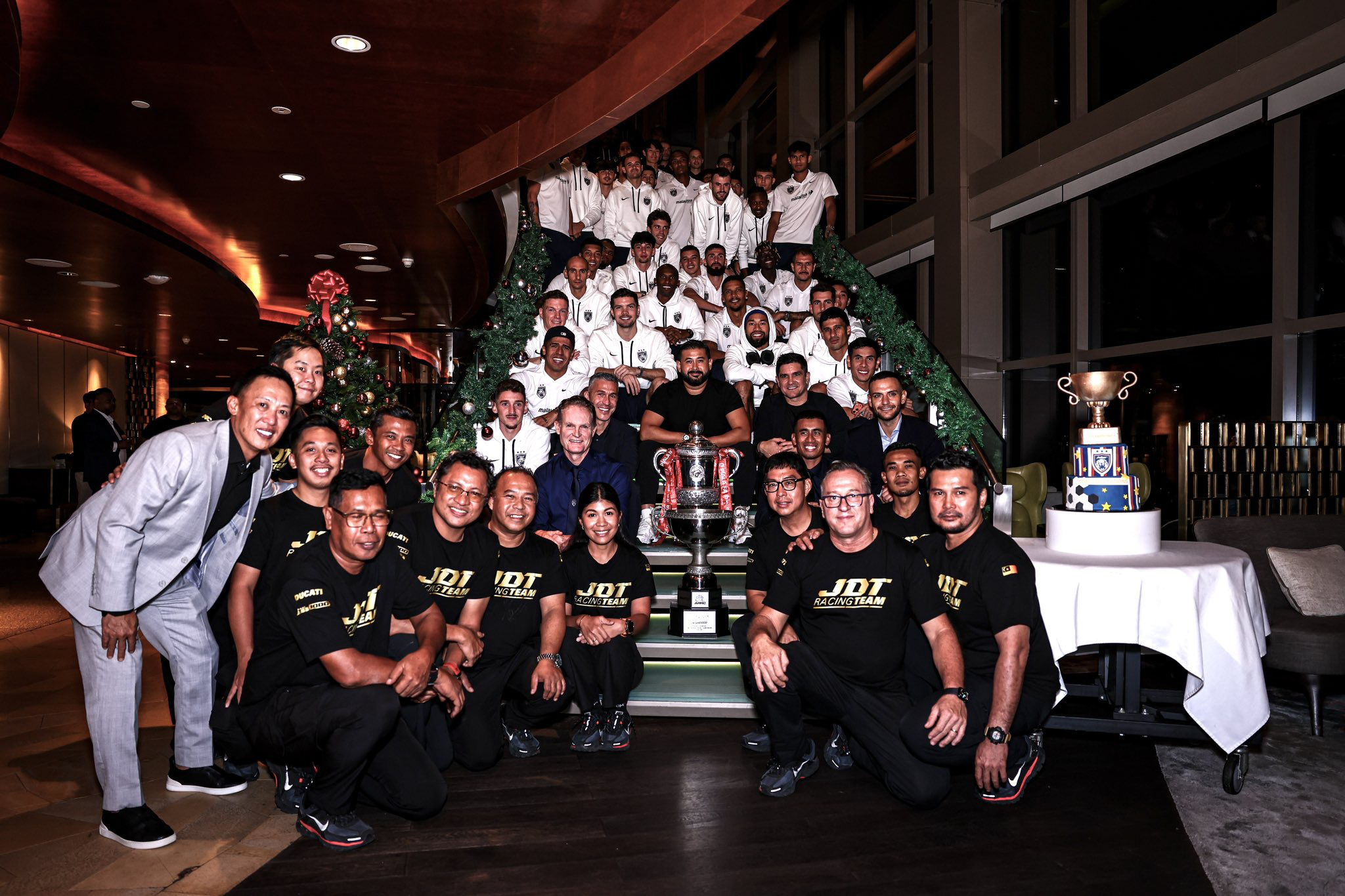 Tiga pemain Johor Darul Ta’zim (JDT) yang digantung oleh Persekutuan Bolasepak Antarabangsa (FIFA) iaitu Joao Figueiredo, Hector Hevel dan Jon Irazabal turut kelihatan meraikan kejayaan Harimau Selatan menjuarai Piala FA buat kali kelima, semalam.