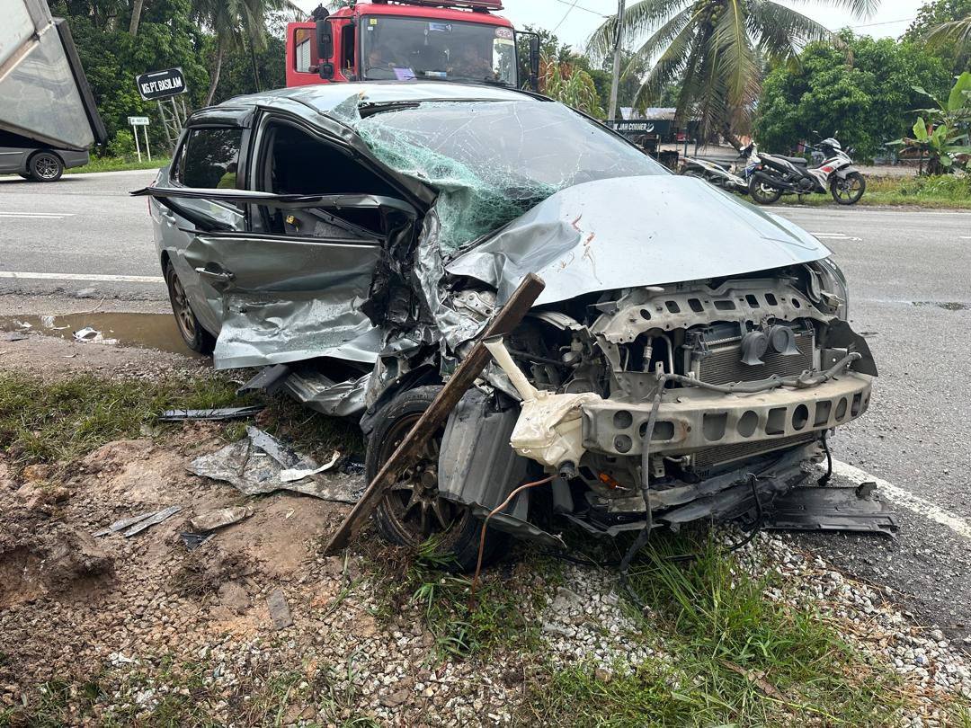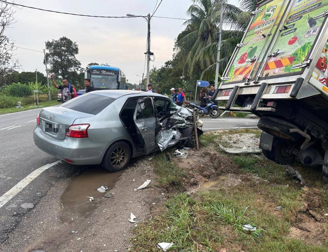 Dalam kejadian kira-kira jam 4 petang itu, mangsa, Jamaliah Aris, 37, yang merupakan guru di Sekolah Menengah Kebangsaan Dato Mohd Yunos Sulaiman mengalami kecederaan parah selepas kereta jenis Toyota Vios dipandunya bertembung dengan sebuah lori Isuzu.
