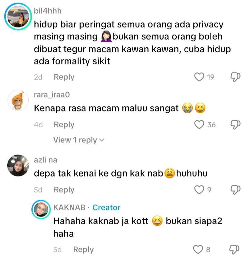 Di sebalik gemerlap dunia media sosial, setiap penceritaan ada hikmahnya. Begitulah yang dapat dilihat melalui insiden melibatkan Kak Nab, seorang pempengaruh TikTok yang juga penganjur popular Kak Nab Food Festival, yang didakwa dihalau keluar dari Restoran Rembayung baru-baru ini.