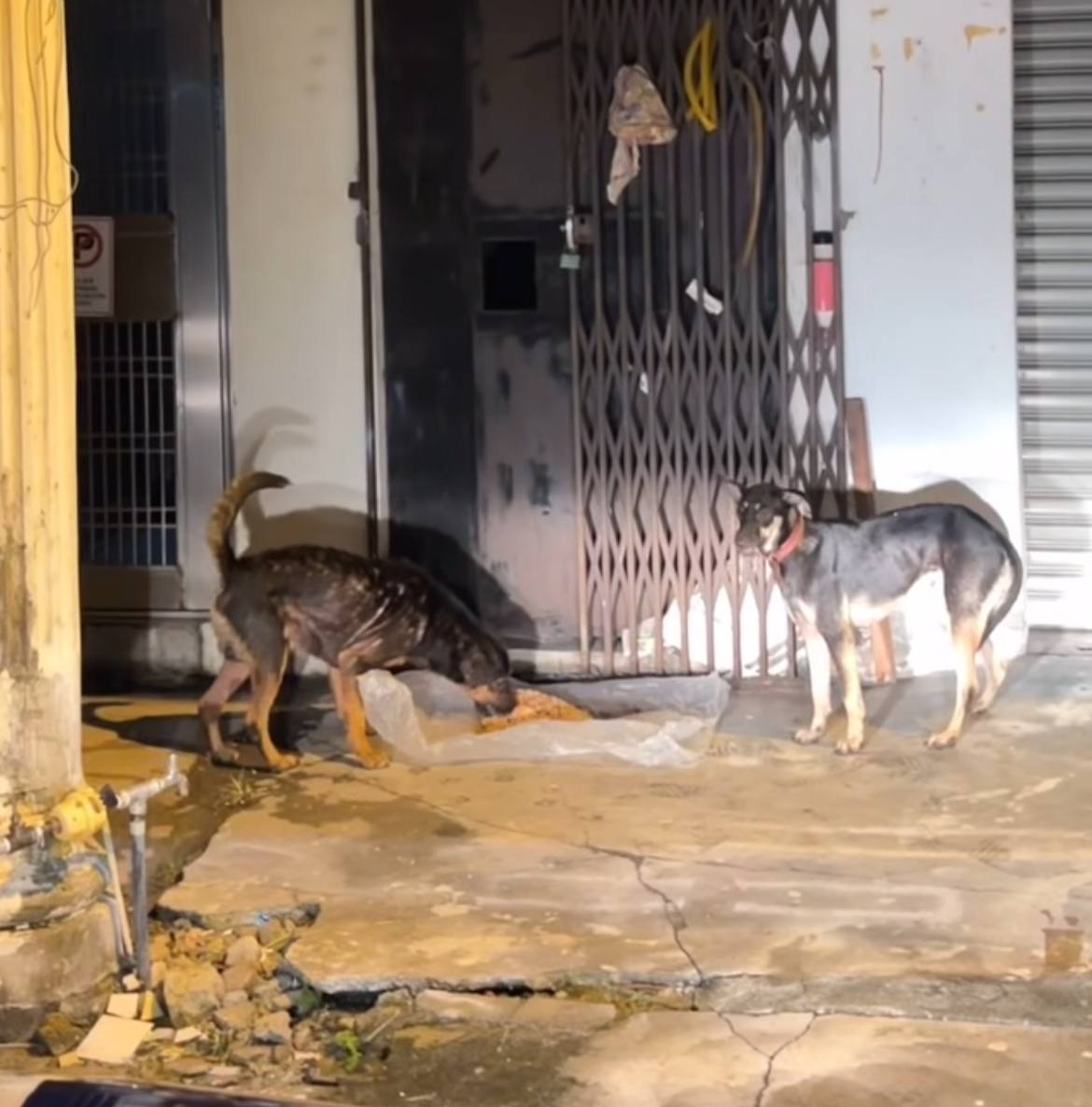 Dalam perkongsian sama, wanita muslim itu juga menunjukkan dua ekor anjing jalanan sedang menikmati makanan yang dimasaknya dengan penuh berselera membuatkan dirinya berasa gembira kerana usaha yang dilakukan bukan perkara yang sia-sia.