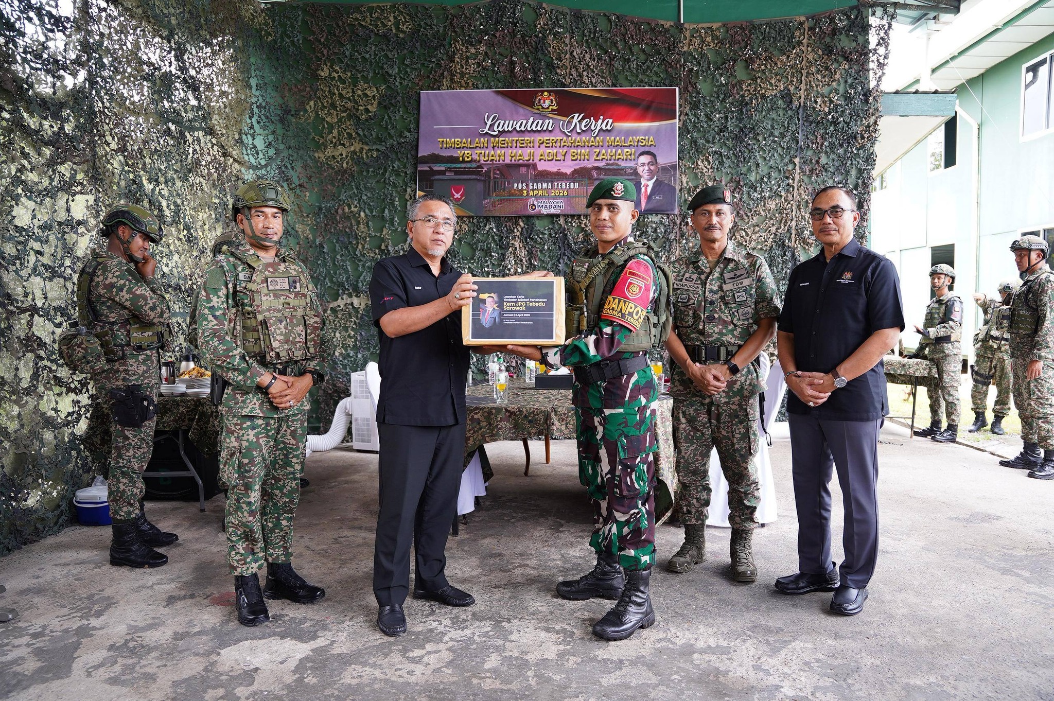Tambah MINDEF, beliau menerima taklimat mengenai status operasi melibatkan enam pos keselamatan di sempadan Malaysia–Indonesia selain meninjau perkembangan projek penyelenggaraan dan prasarana kem.