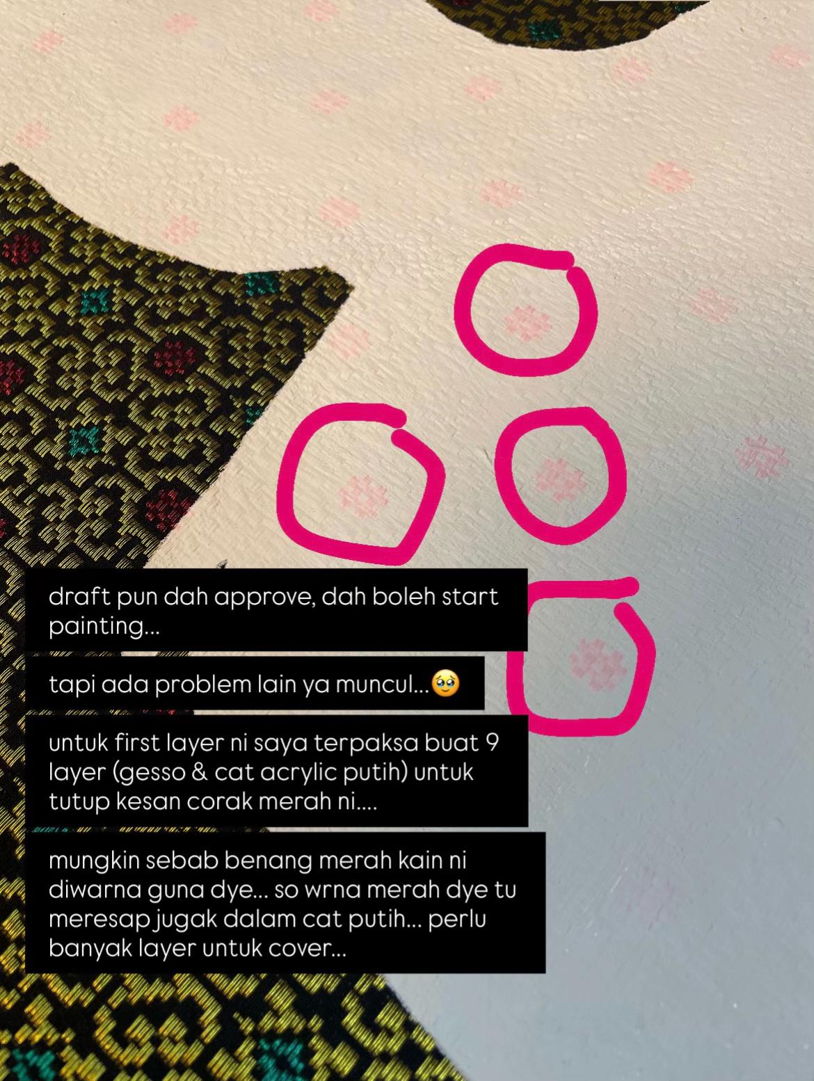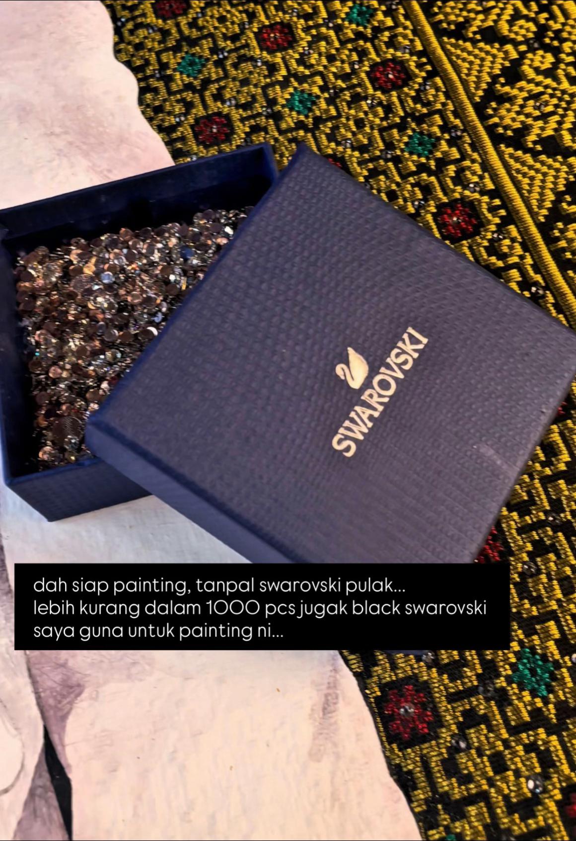 Medium yang digunakan ialah kain tenun Silubang Bangsi dengan cat akrilik, manakala sentuhan akhir dihiasi kira-kira 1,000 batu Swarovski hitam dan 20 kepingan emas wafer 999, setiap satunya bernilai sekitar RM180.