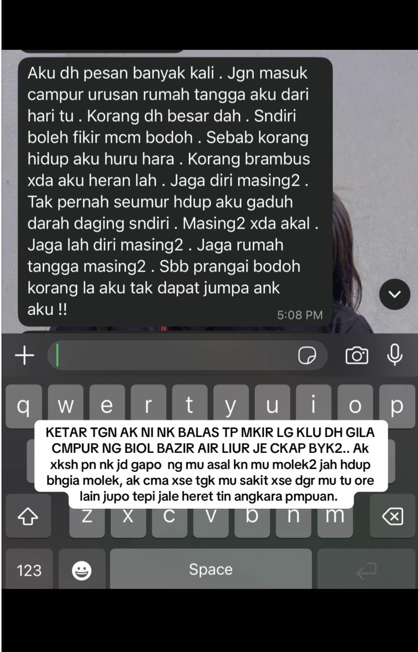 “Jaga diri masing-masing. Tak pernah semur hidup aku gaduh dengan darah daging aku sendiri. Masing-masing tiada akal. Jaga rumah tangga sendiri. Sebab perangai bod*h korang la aku tak dapat jumpa anak aku,” ujar Haqiem.