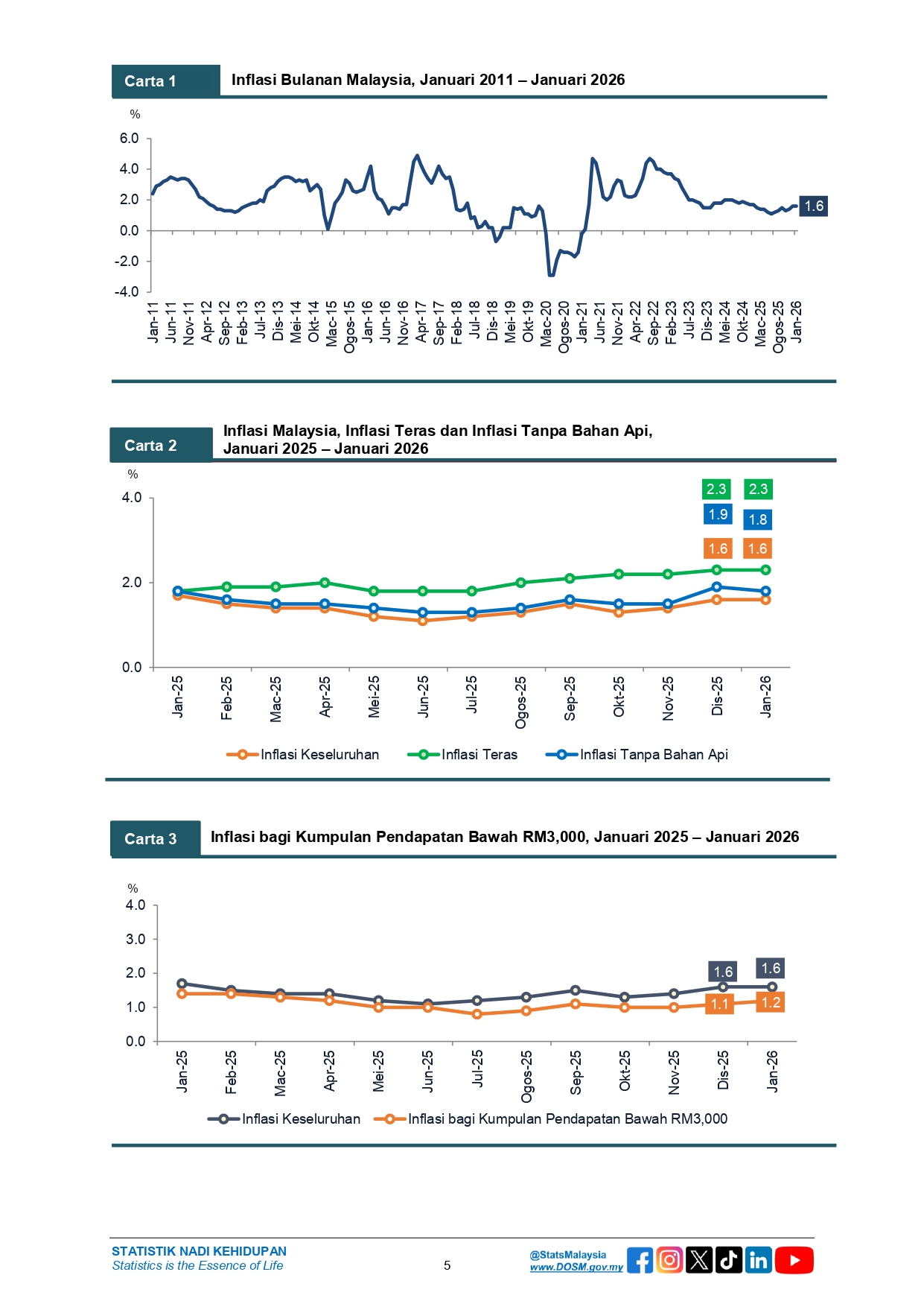 Inflasi Malaysia Meningkat 1.6 Peratus Pada Januari 2026