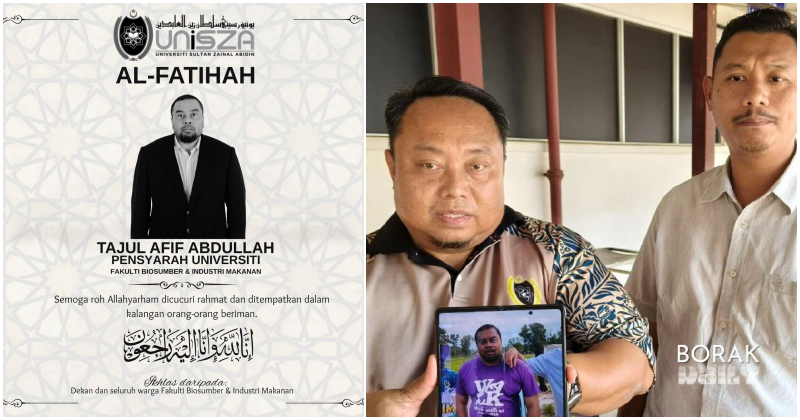 Misteri kehilangan seorang pensyarah Universiti Sultan Zainal Abidin (UniSZA), Tajul Afif Abdullah, 49, yang tidak hadir ke kampus sejak Isnin akhirnya terungkai apabila ditemukan...