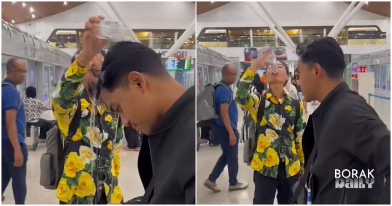 Tular di media sosial rakaman video yang memaparkan seorang lelaki dipercayai warga Kemboja menyiram sebotol air ke atas kepala seorang staf sekuriti KLIA.