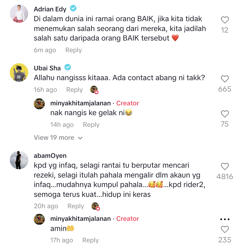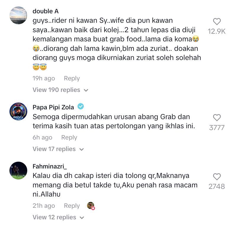 Susulan itu, individu berkenaan mendoakan agar urusan penghantar makanan berkenaan dipermudahkan dan terus kuat mencari rezeki demi keluarga.