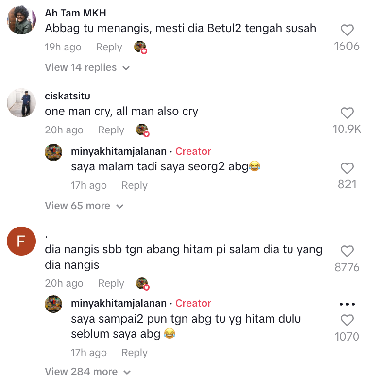 Abang tu menangis, mesti betul2 tengah susah