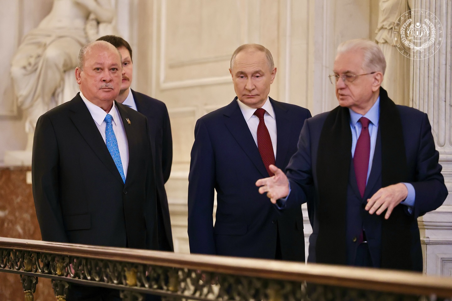 Pertemuan Yang Di-Pertuan Agong, Sultan Ibrahim Sultan Iskandar, dengan Presiden Russia, Vladimir Putin, di Muzium Hermitage, St Petersburg, mencerminkan pengukuhan hubungan persahabatan antara kedua-dua negara.