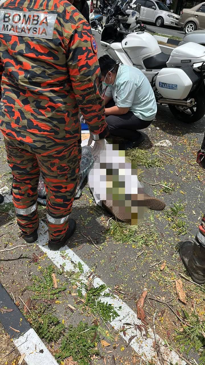 “Saya minta kawan hantar ke tempat kejadian dan nampak anggota pasukan penyelamat sedang memotong dahan pokok sebelum mengalihkan arwah suami,” ujarnya.