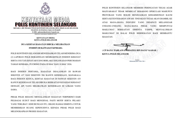 Menerusi kenyataan di buat Ketua Polis Selangor, Shazeli Kahar menyatakan pihaknya menerima dua laporan polis berasingan berkaitan kejadian terbabit.