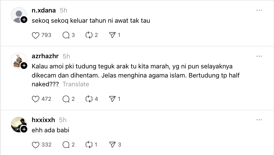 Namun, rakaman video itu telah mencetuskan perbincangan hangat di media sosial mengenai adab berpakaian dan sensitiviti terhadap ajaran agama Islam dalam aktiviti awam.