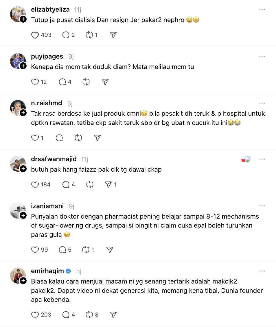 Sebahagian netizen menyifatkan kenyataan itu sebagai “pepandai cakap”, selain bimbang ia boleh memberi kesan buruk kepada pesakit yang sedang menjalani rawatan perubatan, khususnya penghidap diabetes dan penyakit kronik lain.