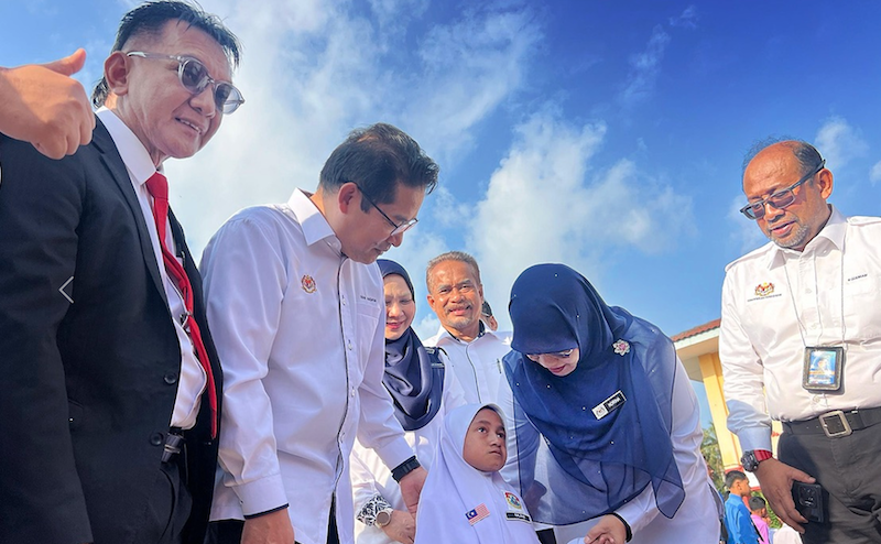 Siti Nur Najwa Zulkifli, 19, yang mengalami masalah tumbesaran tulang tetap hadir pada hari pertama persekolahan dengan penuh keterujaan sebelum meneruskan perjalanan ke Sekolah Menengah Kebangsaan (SMK) Pulau Beluru, Sekolah Model Khas Komprehensif 11 (K11).