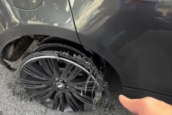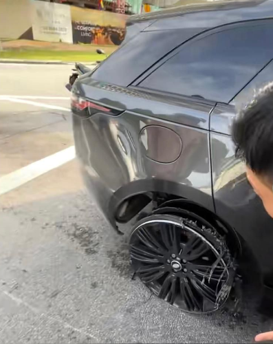 Video berdurasi satu minit itu memaparkan Range Rover berkenaan bergerak menggunakan rim sahaja sebelum dirakam oleh seorang penunggang motosikal di Lebuhraya Sungai Besi menghala ke Taman Naga Emas, sekitar pukul 8 pagi semalam.