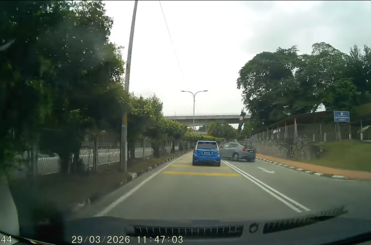 Rakaman video kemalangan yang tular di media sosial menunjukkan sebuah kereta memandu laju, memotong garisan berkembar, dan merempuh motosikal sehingga penunggangnya terpelanting ke atas kenderaan lain.