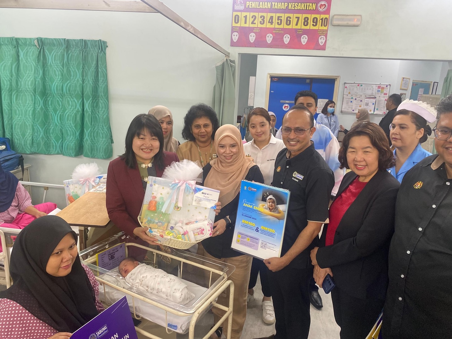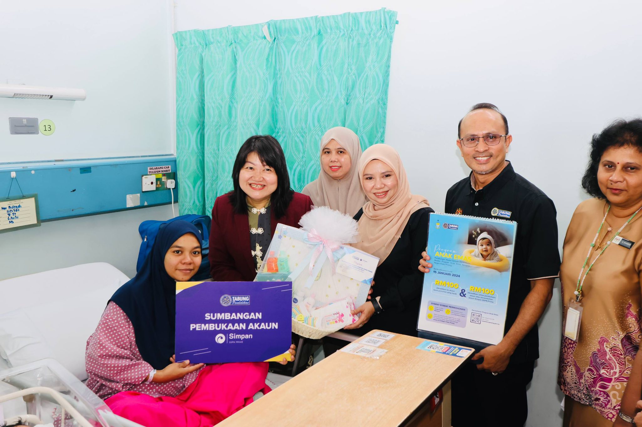 YB Puan Lim Siew Khim, Exco Pembangunan Sosial, Kebajikan dan Hal Ehwal Bukan Islam Pulau Pinang bersama YBhg. Dato’ Seri Norliza Abdul Rahim, Pengerusi PTPTN bergambar bersama bayi kelahiran baharu semasa sesi ziarah Program Sumbangan Akaun Simpan SSPN Prime dan Barangan Bayi sempena Program Anak Emas.