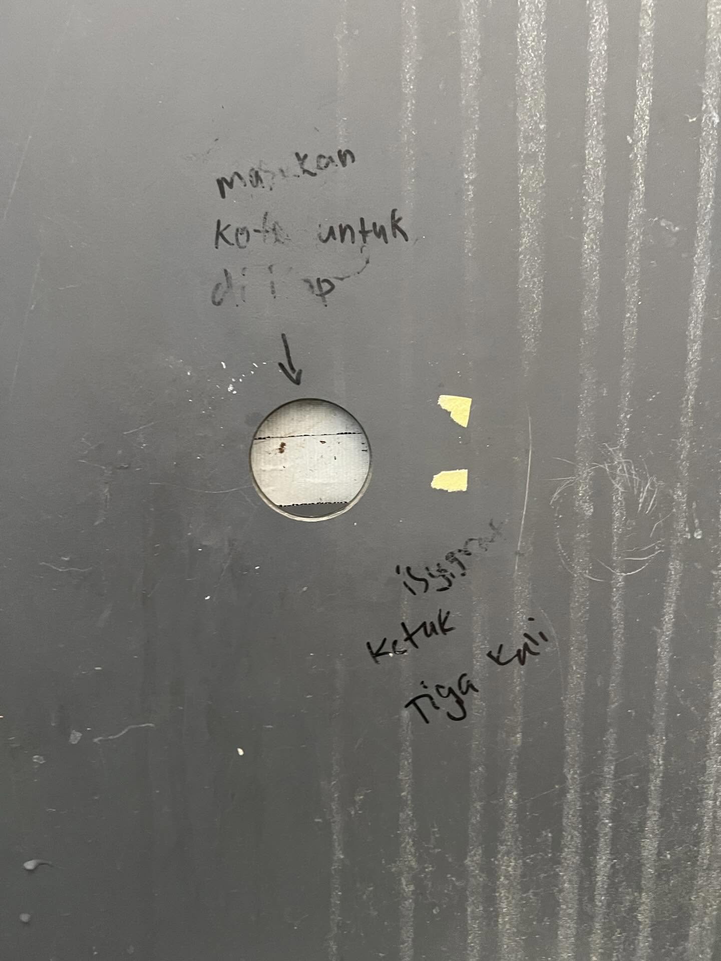 “Aku baik punya tengah memerut, tiba-tiba ada kaki masuk side tandas aku, disebabakan sakit perut punya fasal aku tak perasan ada lubang sebelah aku, lubang tu asalnya tertutup dengan tape.