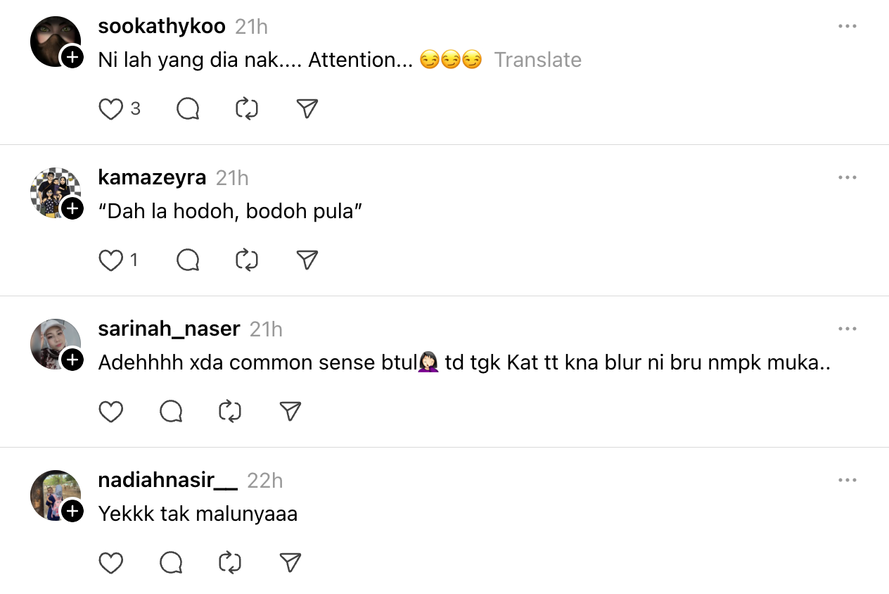 Meninjau ke ruangan komen, rata-rata meninggalkan komen berunsur kecaman selain menggesa pihak berkuasa supaya mengambil tindakan terhadap wanita terbabit.