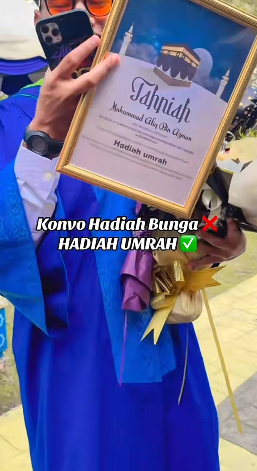 Menerusi perkongsian di TikTok, graduan yang dikenali sebagai Muhammad Afiq itu berasa terkejut apabila keluarganya menghadiahkan pakej penerbangan ke Mekah bagi menunaikan ibadah umrah.