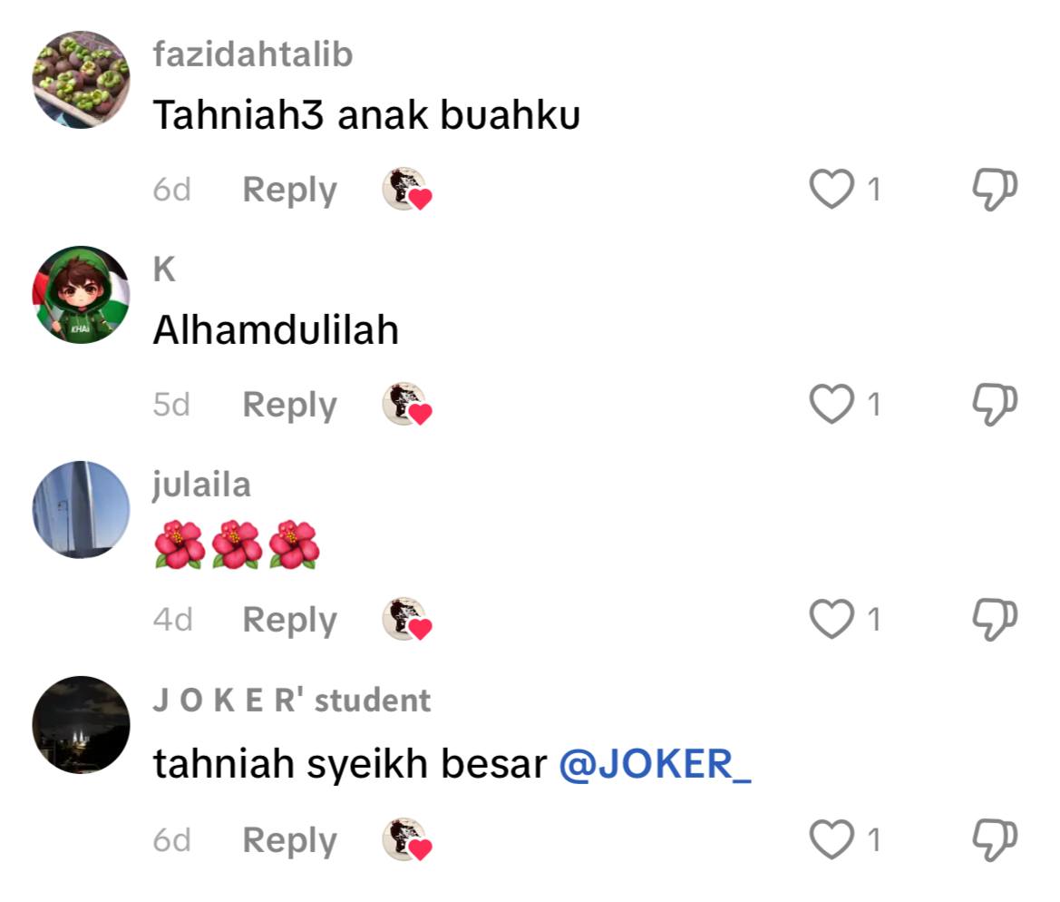 “Kebetulan dia grad, rezeki Allah beri melalui hadiah ni. Bila dah sampai waktunya, Allah jemput dengan cara masing-masing,” tulisnya.