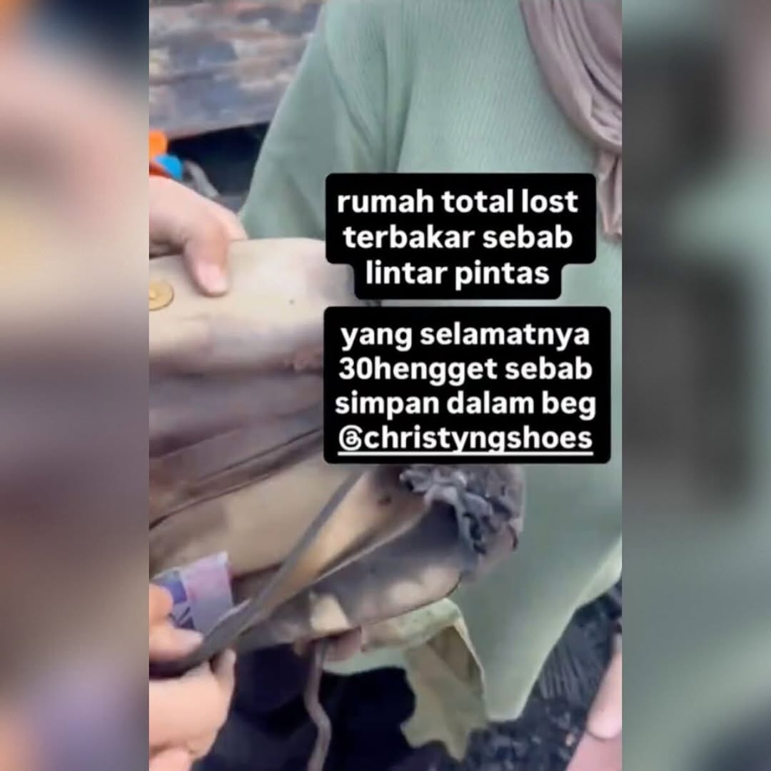 Kisah seorang wanita yang kehilangan hampir keseluruhan harta apabila rumahnya musnah dalam kebakaran menjadi tular di media sosial selepas terdapat RM30 yang terselamat di dalam sebuah beg tangan jenama usahawan Christy Ng.
